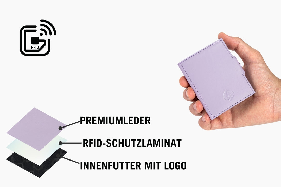 Der eingebaute RFID-Schutz schützt Deine Karten vor dem unbefugten Auslesen von Dieben.