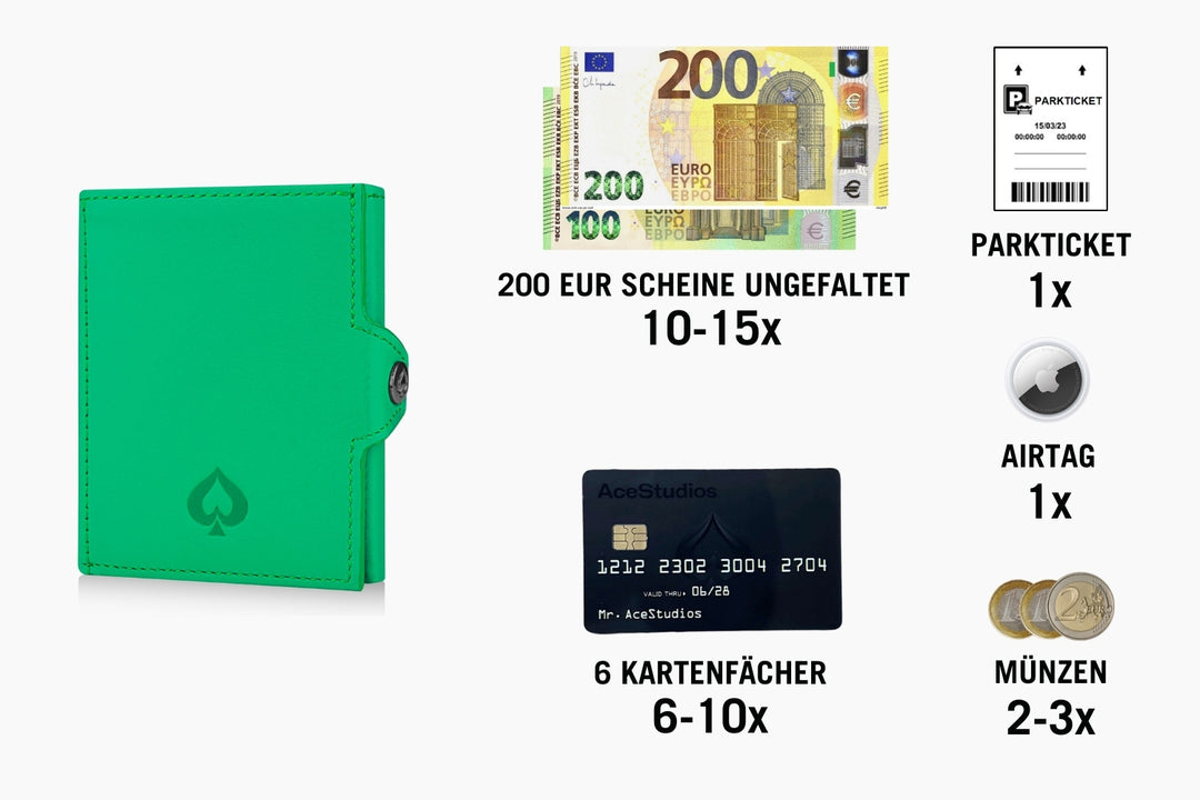 Ideal für den Alltag: Das AceWallet kann alles was Deine Geldbörse kann, nur besser. Der Ideale Begleiter ohne unnötige Sichtfenster.