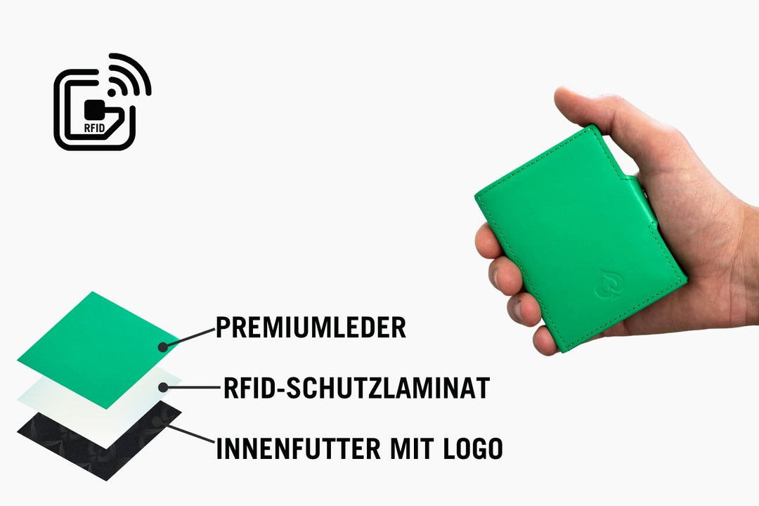 Der eingebaute RFID-Schutz schützt Deine Karten vor dem unbefugten Auslesen von Dieben.